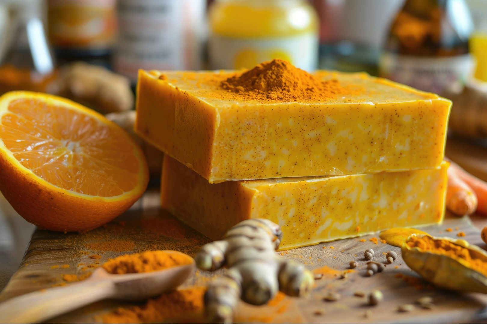 Notre savon au curcuma illumine votre teint, apaise les irritations et nettoie en douceur. 100% naturel, idéal pour tous les types de peau.