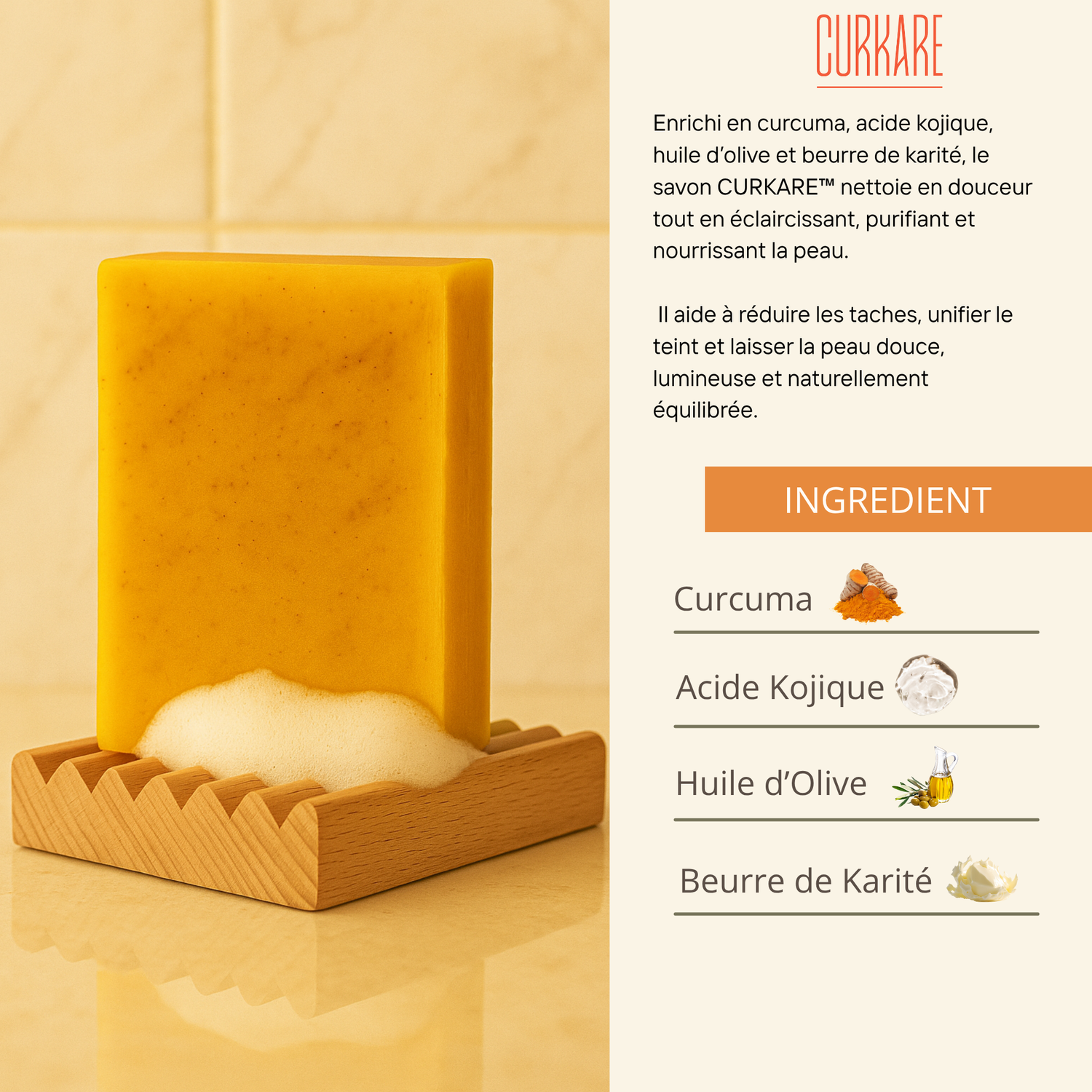 CURKARE™ — Savon au Curcuma & à l’Acide Kojique